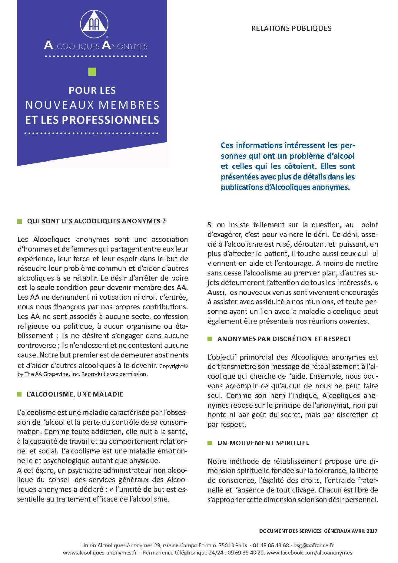 Alcooliques anonymes ne porte pas de diagnostic médical ou psychiatrique et ne donne pas d’avis sur les traitements et les médicaments.
